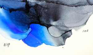 黒と濃い青(B29, B39)や濃い紫(BV29)を隣接させ、エタノールで境界をわずかにぼかします。これにより、黒の中に濃い青や紫が浮かび上がり、深遠な夜空の表現になります。