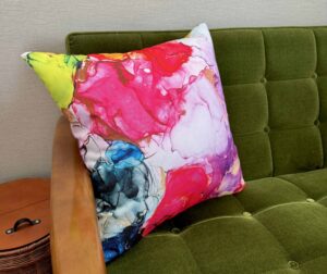 - 事例16:クッションカバー: インテリアの中で比較的安価に試せるアイテム。綿や麻素材に印刷し、ソファーとのコーディネートを提案します。(SUZURIにて制作例)。