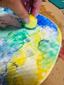 • スポンジ: 乾いてしまうとゆっくりアートできないので、簡単に楽しみたい方にはこちらがおすすめ!パレットに好きな色を落としエタノールで少し伸ばしたら、スポンジにつけて和紙の表面をポンポンするだけ。優しい仕上がりになります。