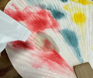 注意! 定着スプレーを一度に大量に吹き付けると、和紙の繊維が湿気で波打ったり、せっかくの滲みが再度広がってしまう危険性があります。焦らず、薄く、遠くからスプレーすることを心がけてください。