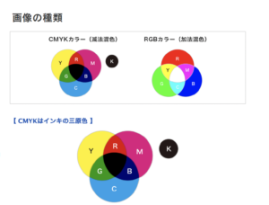 - RGBは光の色、CMYKはインクの色であることを意識する