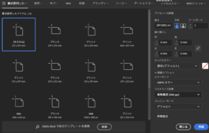 - 制作開始時にカラーモードをCMYKに設定する