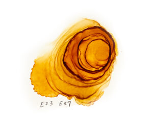 1. 配置:E23(ヘーゼルナッツ)など淡い茶色から、E37(セピア)など濃い茶色まで、同心円状に少しずつインクを垂らします。