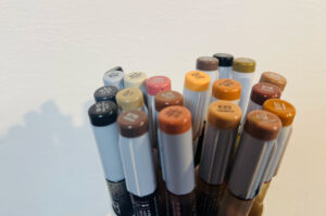 コピックのE系(Earth)には、大きく分けて赤み(ウォーム系)青み(ニュートラル系)の色調があります。これをメタリックと組み合わせることで、ゴージャスさが格段に向上していきます。