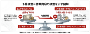 予算調整=作業内容の調整を示す図解案