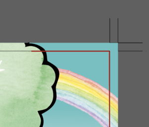 しっかり縁まで綺麗に印刷するためには「塗り足し(裁ち落とし)」という少し多く色や範囲を作り印刷した際に「裁ち落とし:3mm」を必ず取る必要があります。
