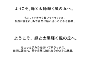 上の文と下の文どちらが読みやすいですか?文字の詰めやフォントの印象でこんなに雰囲気も変わります。ただ文字を入力するだけでなくて細かな点まで突き詰めて考えられるようになるとデザイナーとしての技術もぐんと上がっていきます。