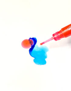 • 始めた頃は、エタノールが乾くまもなく紙全体にインクを広げていったAさん。ぼんやりしたアートを描くには良いんですが、どうしてもいろんな色のインクが混ざりすぎると暗く濁った色になってしまっていました。描きたい一つずつを意識して描くようになったら色が混ざりすぎず鮮やかなアートを描けるようになりました。